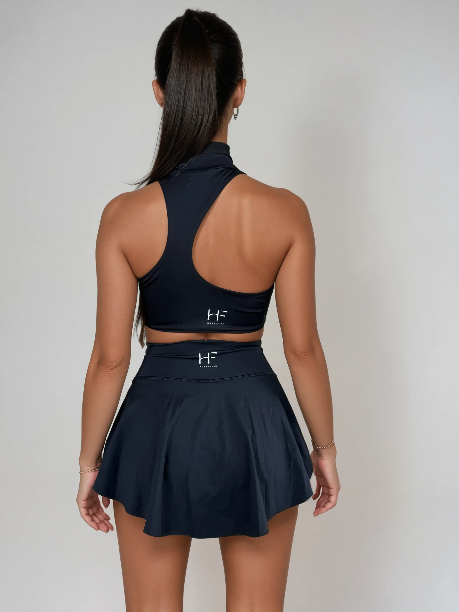 The Tennis Girl Set in black is where sporty elegance meets effortless cool. Featuring a structured sports bra with mid-support and a flirty pleated skirt (with built-in shorts, of course), this set is made for movement. Whether you’re rallying on the court or brunching post-match, this look turns heads and keeps you comfy. Designed for high vibe, high energy, and high fashion.