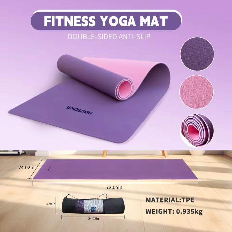 Expertly crafted with high-quality TPE (Thermoplastic Elastomer), this yoga mat is not only eco-friendly but also durable. Its 6MM thick foam provides extra comfort and joint protection, while the non-slip surface offers superior grip on any floor type. Lightweight and portable, it's perfect for home, gym, or outdoor use. With its sweat-resistant and easy-to-clean design, this multi-purpose mat is ideal for yoga, Pilates, stretching, and general fitness exercises. Available in standard dimensions, it's the perfect companion for your wellness journey.